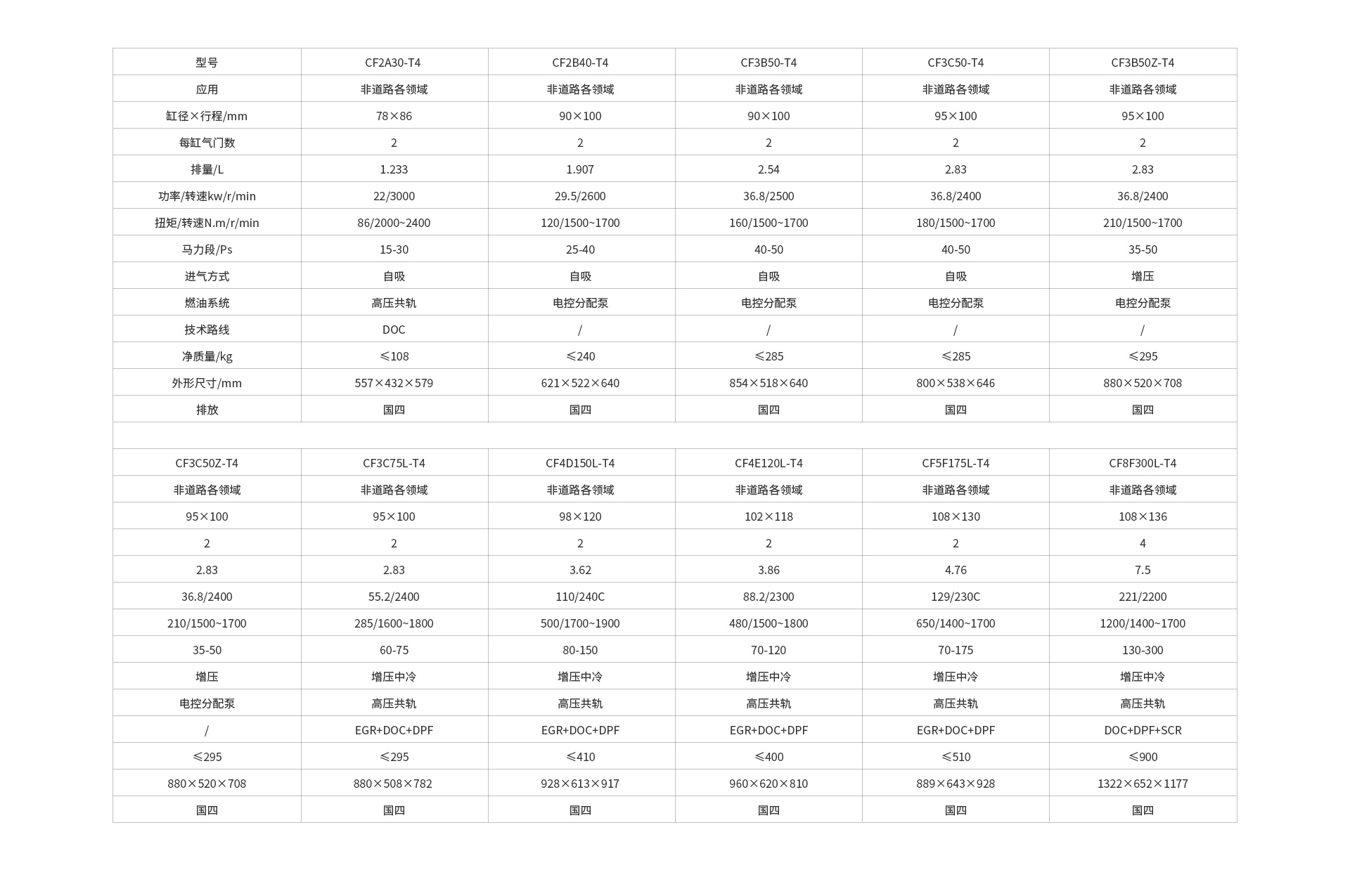 37kW 以下采用電控 VP 泵 / 電控共軌,不帶后處理;37kW~129kW 采用 EGR+DOC+DPF 技術(shù)路線,129kW~220kW 采用 DOC+DPF+SCR 技術(shù)路線。